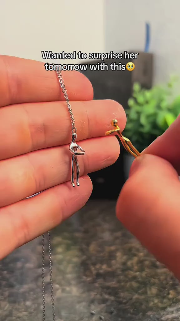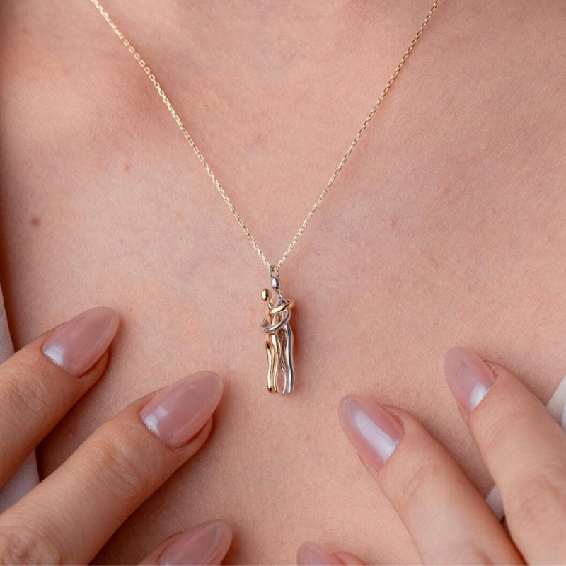 Inspired by the quiet strength of human connection, the Unity Hug Necklace captures the beauty of two forms embracing as one. The fluid lines and contrasting tones reflect balance, harmony, and unity in modern relationships. Designed with minimalism at its core, this piece transforms an intimate gesture into wearable art celebrating love, friendship, and connection in its purest, most elegant form.